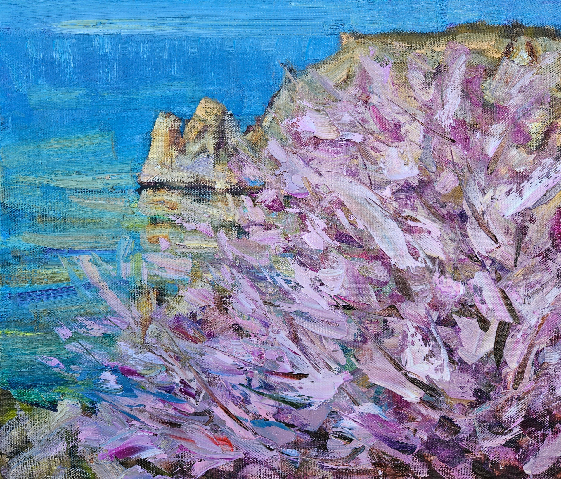 "Бухта Чехова. Гурзуф". 2025. Холст, масло. 60х60. Цена: 30000₽