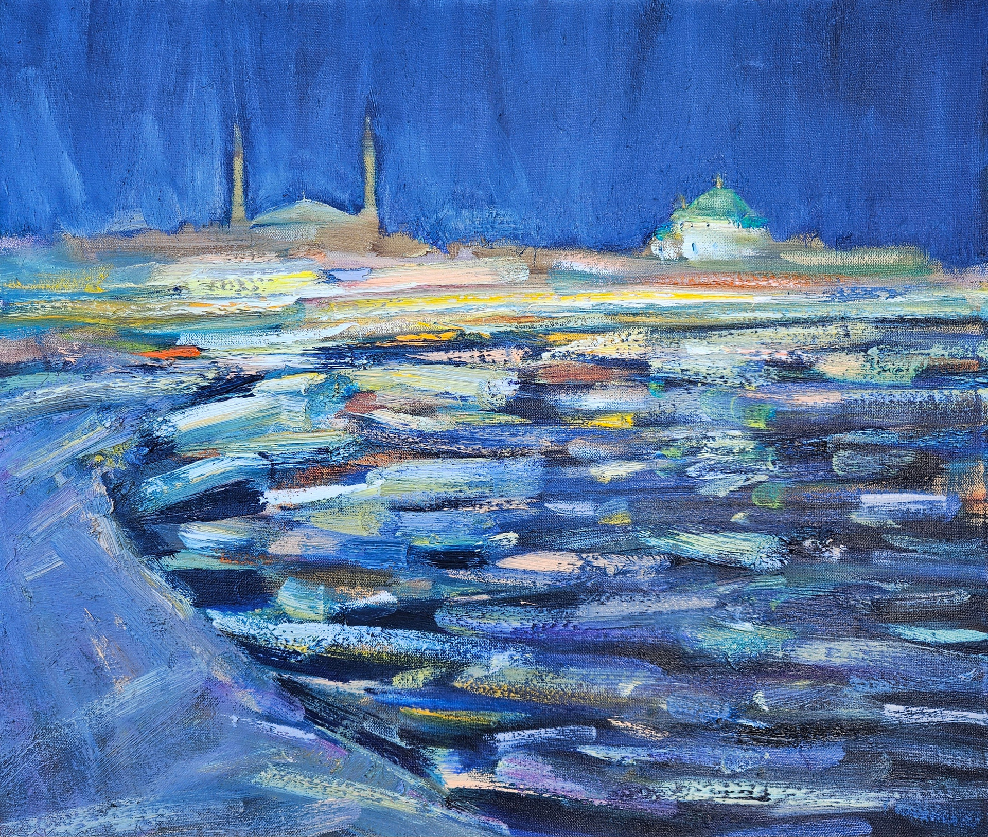"Ночная Евпатория". 2026. Холст, масло. 60х70. Цена: 20000₽